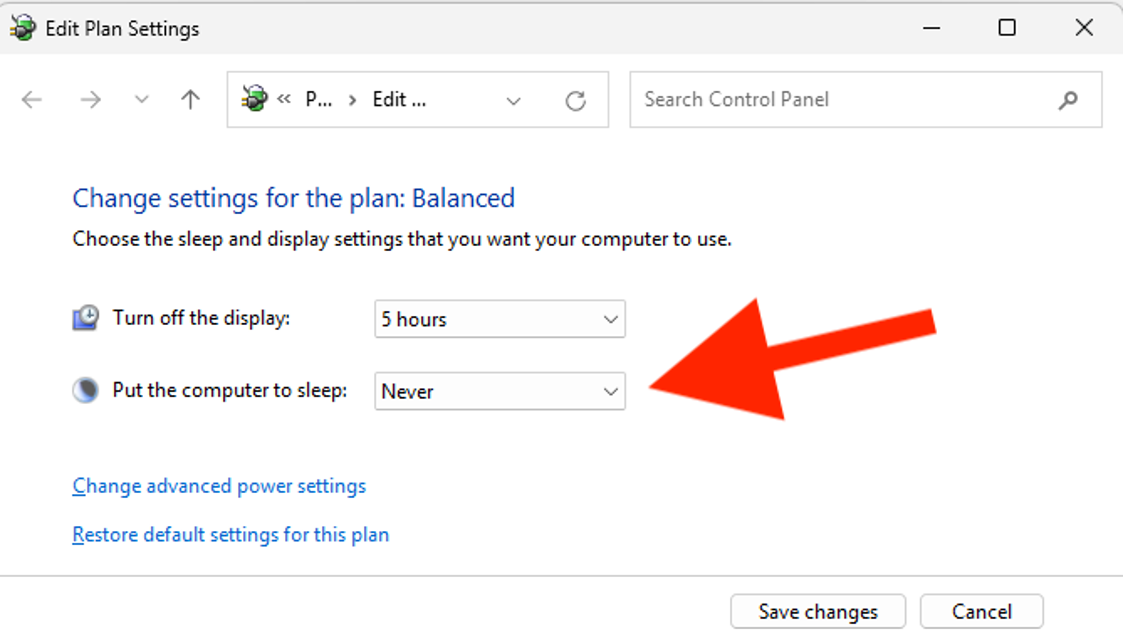 1. Navigate to Windows Settings > Hardware and Sound > Power Options > Edit Plan Settings.