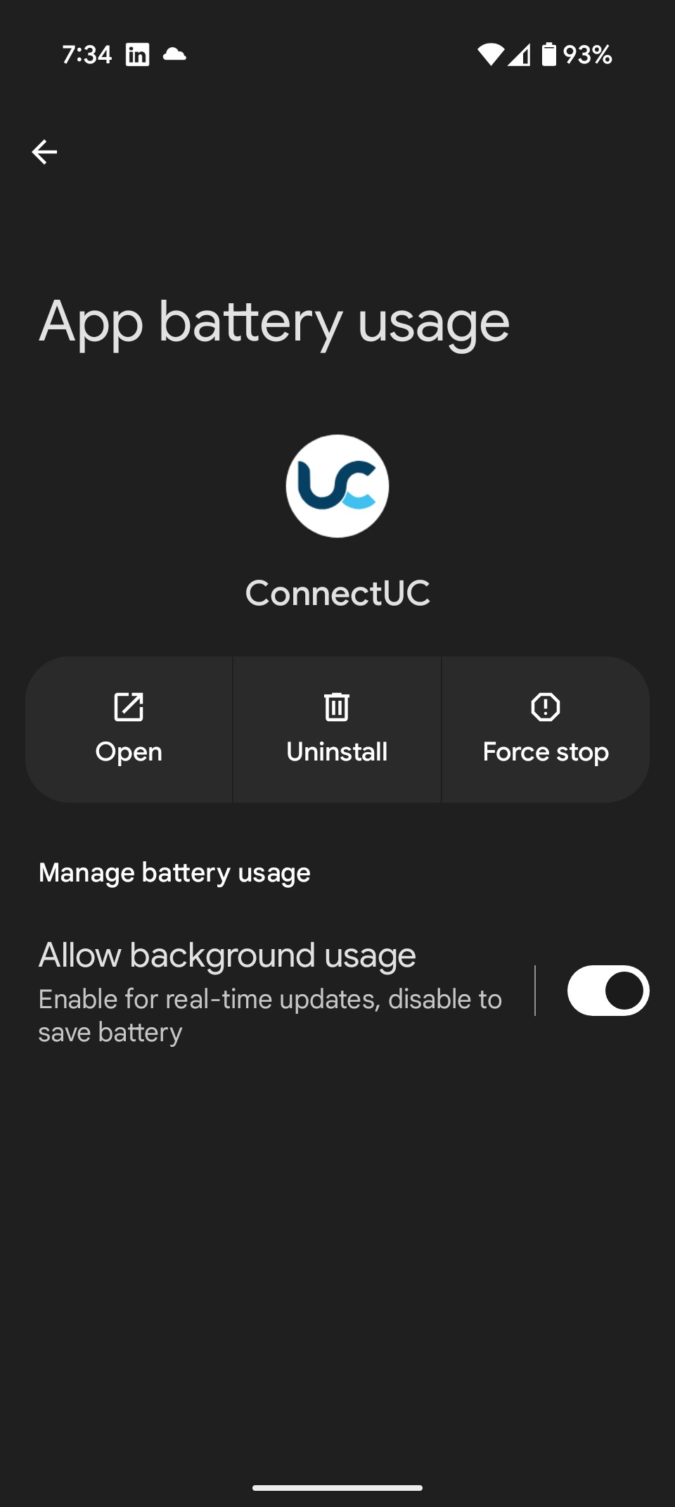 Ensure that ConnectUC is allowed to operate in the background: