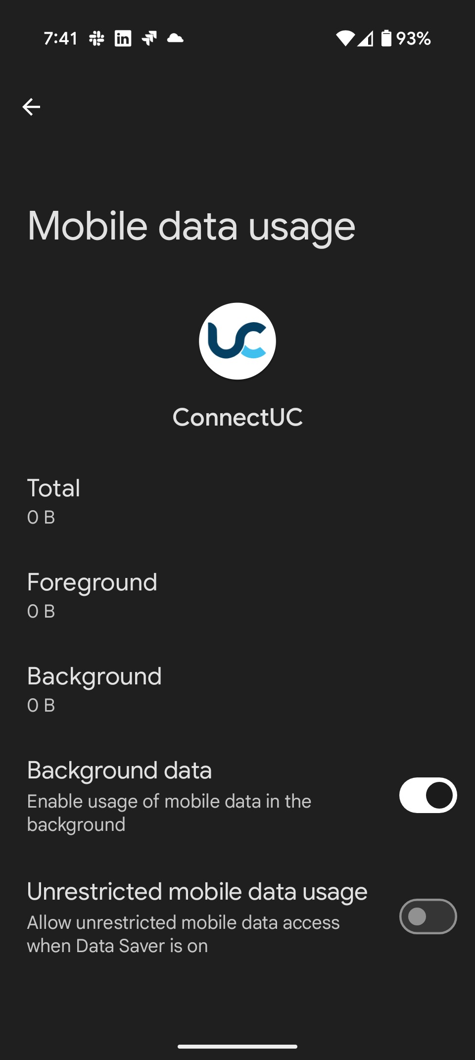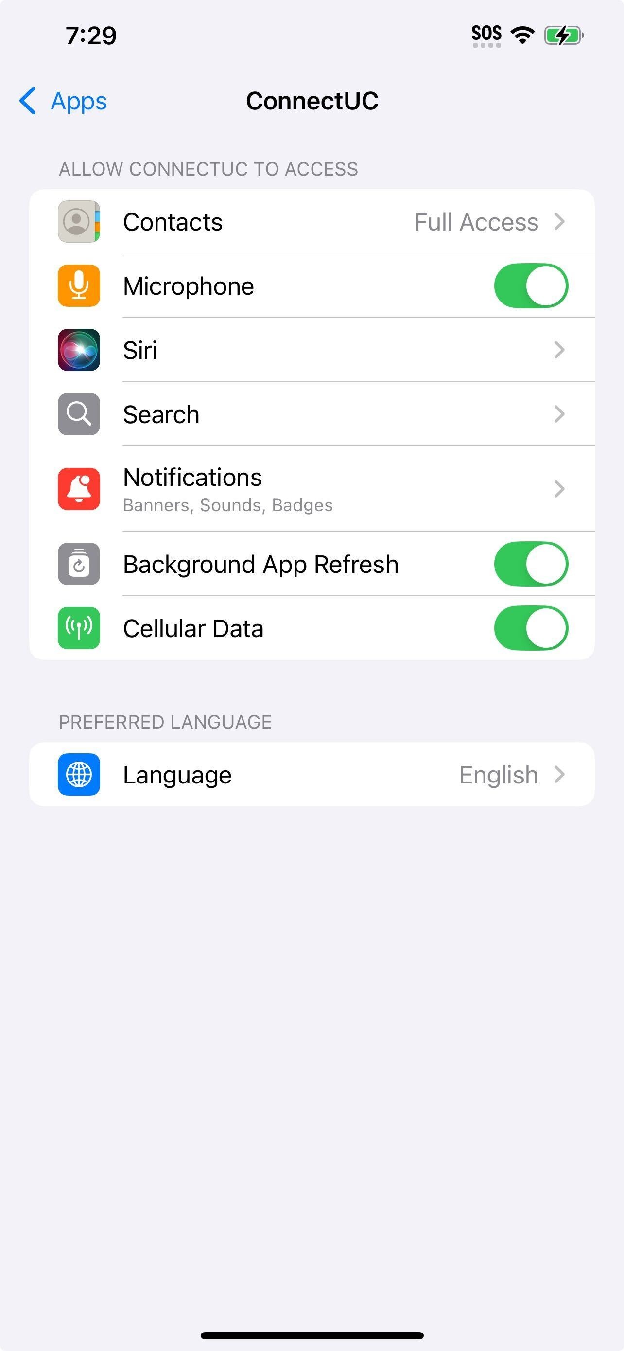 Ensure that ConnectUC App has Bagkground App refresh and Cellular Data enabled: