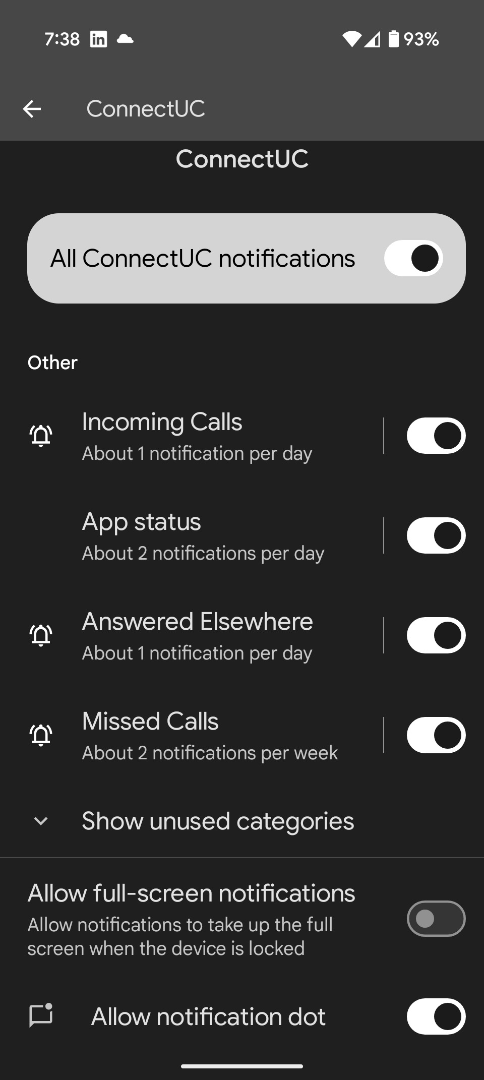 Ensure that "Allow all notifications" is enabled: