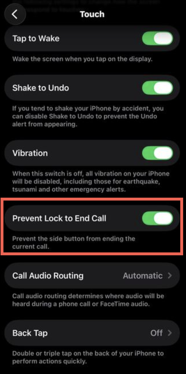 iOS 26 released a new feature under "Accessibility" so that when the lock button is pressed, it will also end your calls.